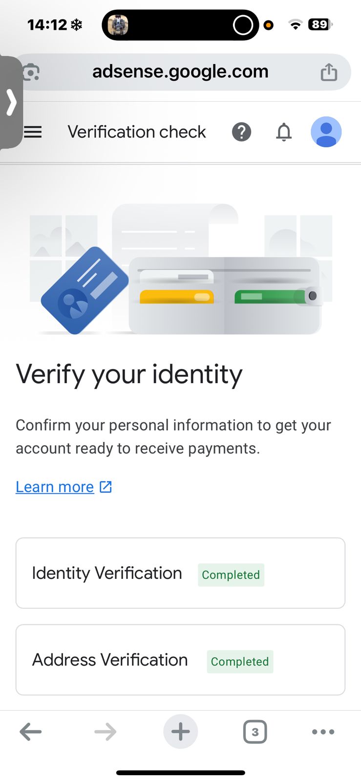 12 Payment Received Adsence Account | 5 Year Old | 69$ Balance