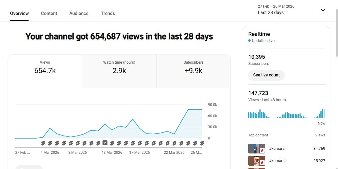 10k+ Subscriber Non-Monetised Channel | 650k+ View | No Strike