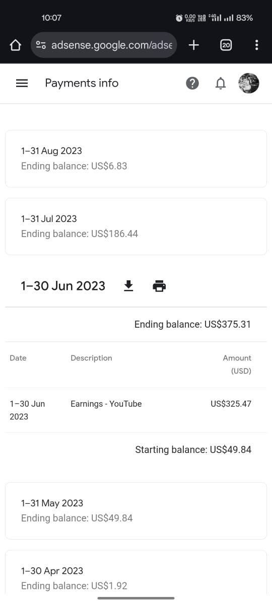 12 Payment Received Adsence Account | 5 Year Old | 69$ Balance