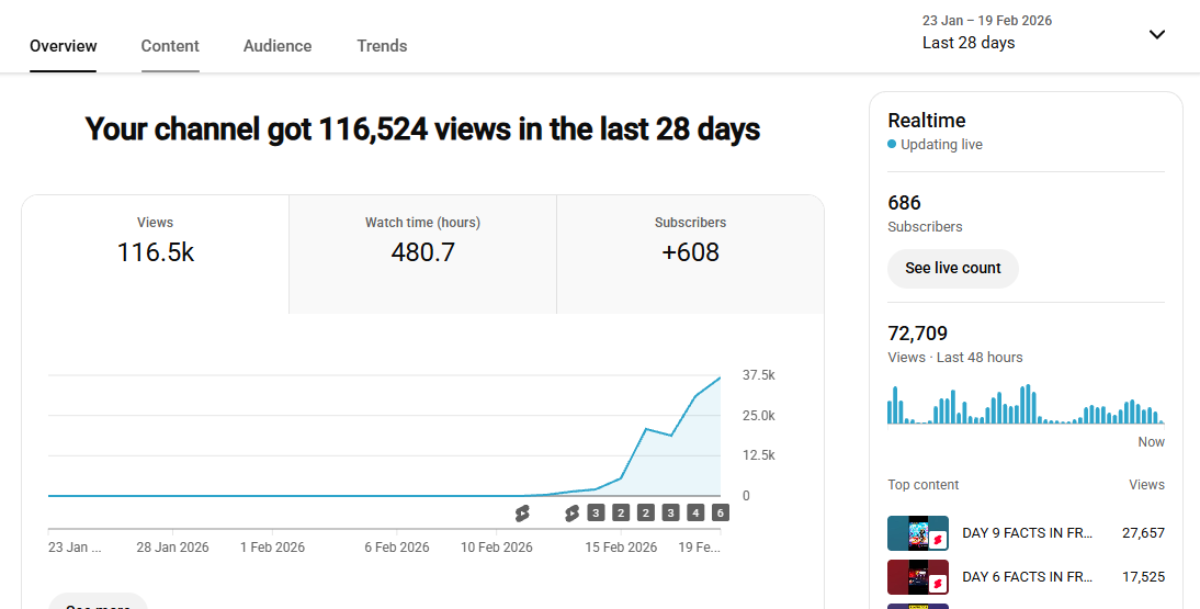 117k+ View Non-Monetised Channel | 650+ Subscriber | No Strike
