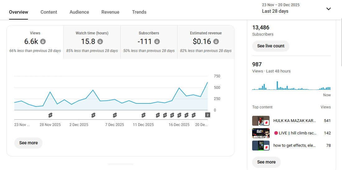13k+ Subscriber Monetised Channel | 6K+ Monthly View | No Strike