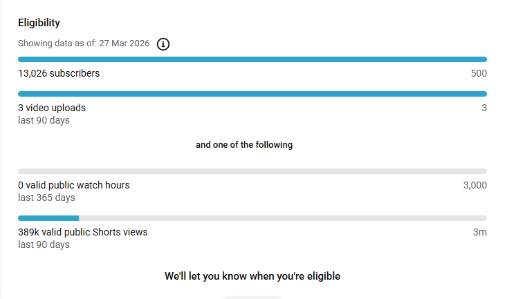 15k+ Subscriber Non-Monetised Channel | 1k View | No Strike ₹3,000.00