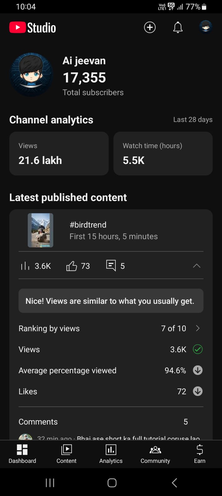 17k+ Subscriber Non-Monetised Channle | 2M+ Monthly View | No Strike