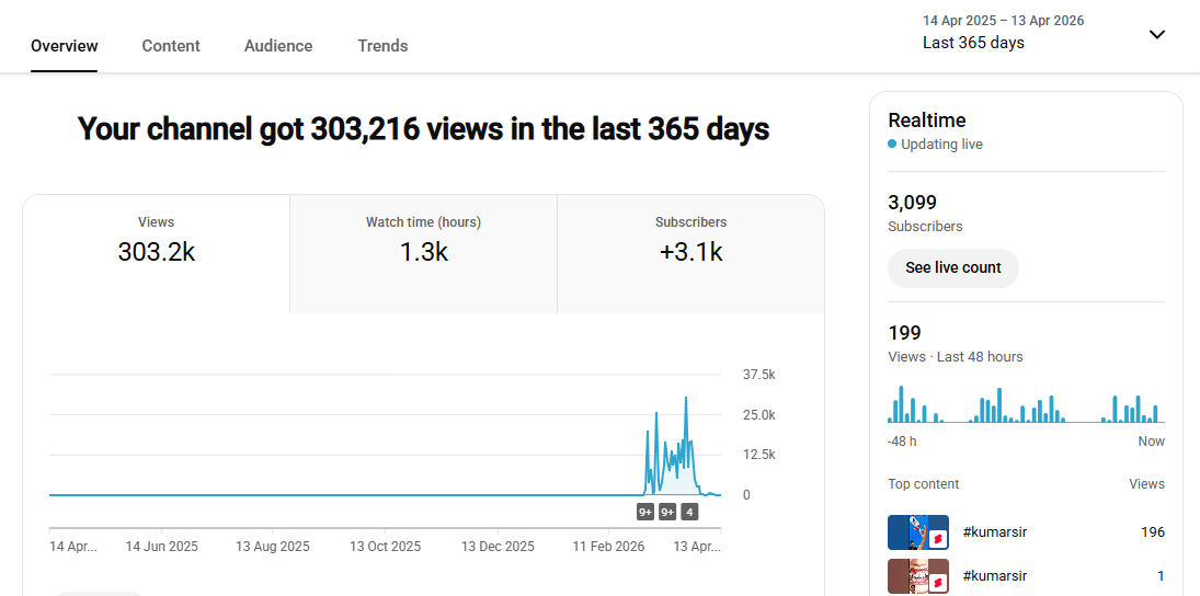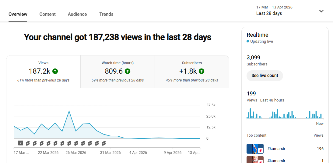 180k+ View Non-Monetised Channel | 3k Subscriber | No Strike