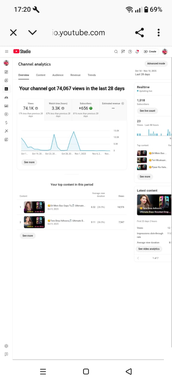 1k Subscriber Monetised Channel | 74k+ Monthly View | No Strike