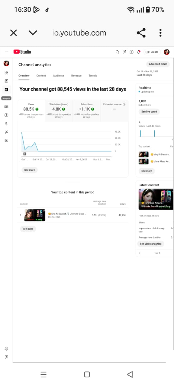 1k Subscriber Monetised Channel | 88k+ Monthly View | No Strike