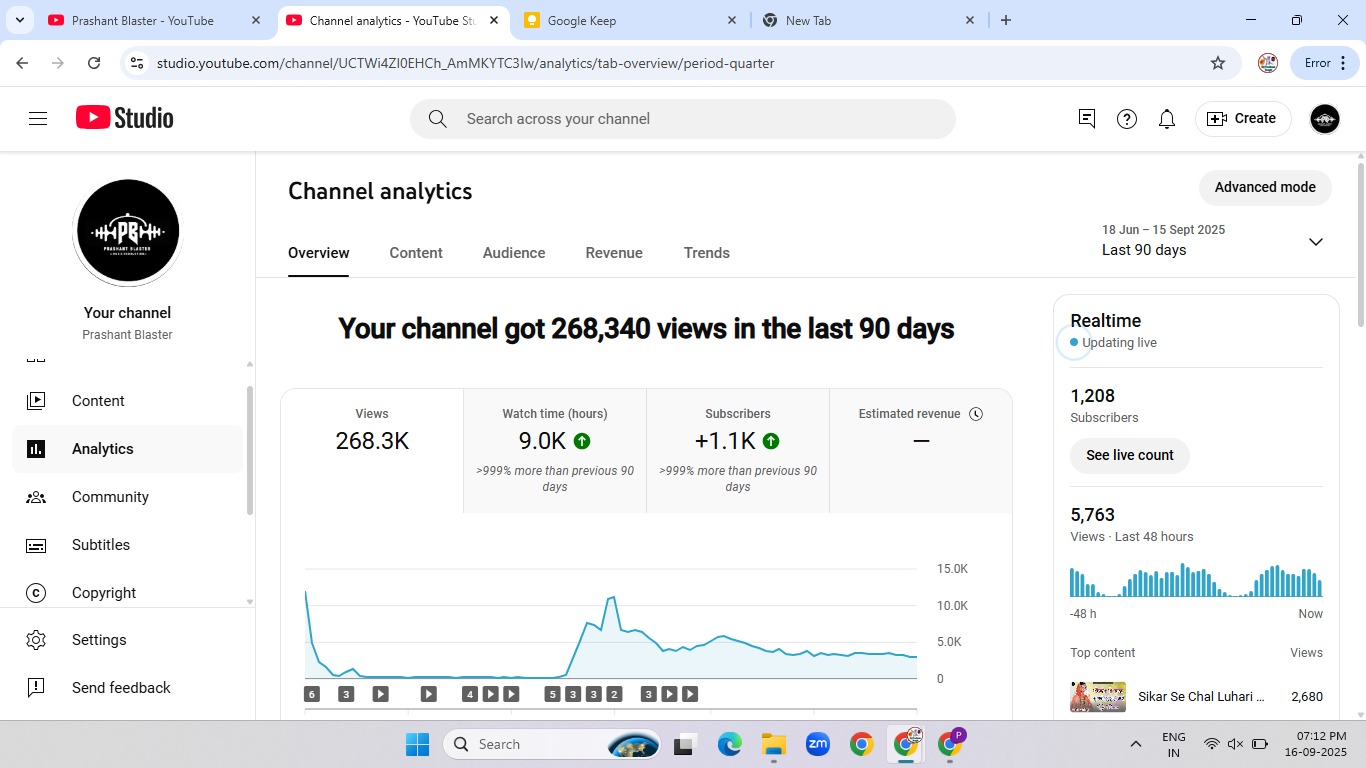 1k+ Subscriber Monetised Channle | 4 Month Old | No Copyright