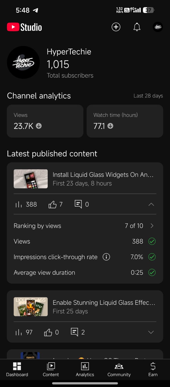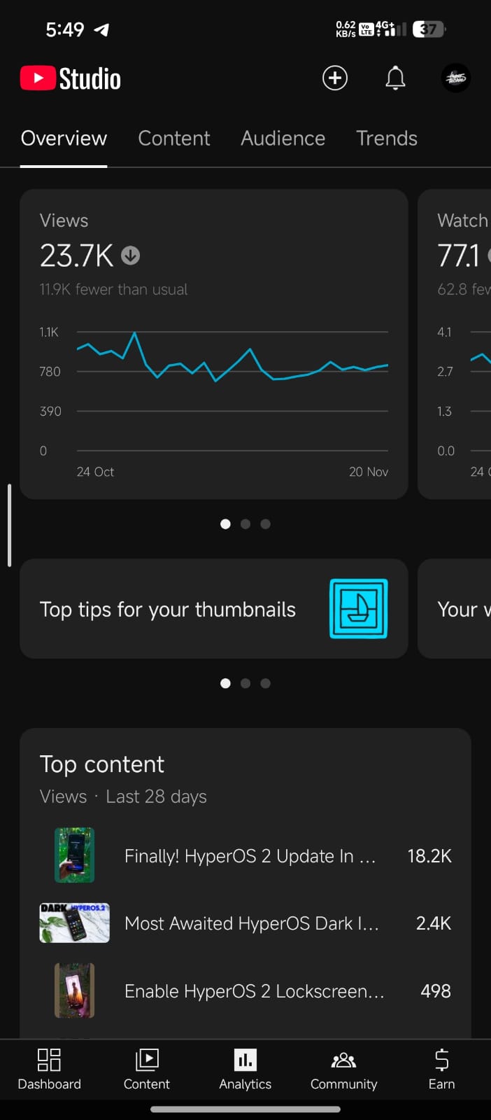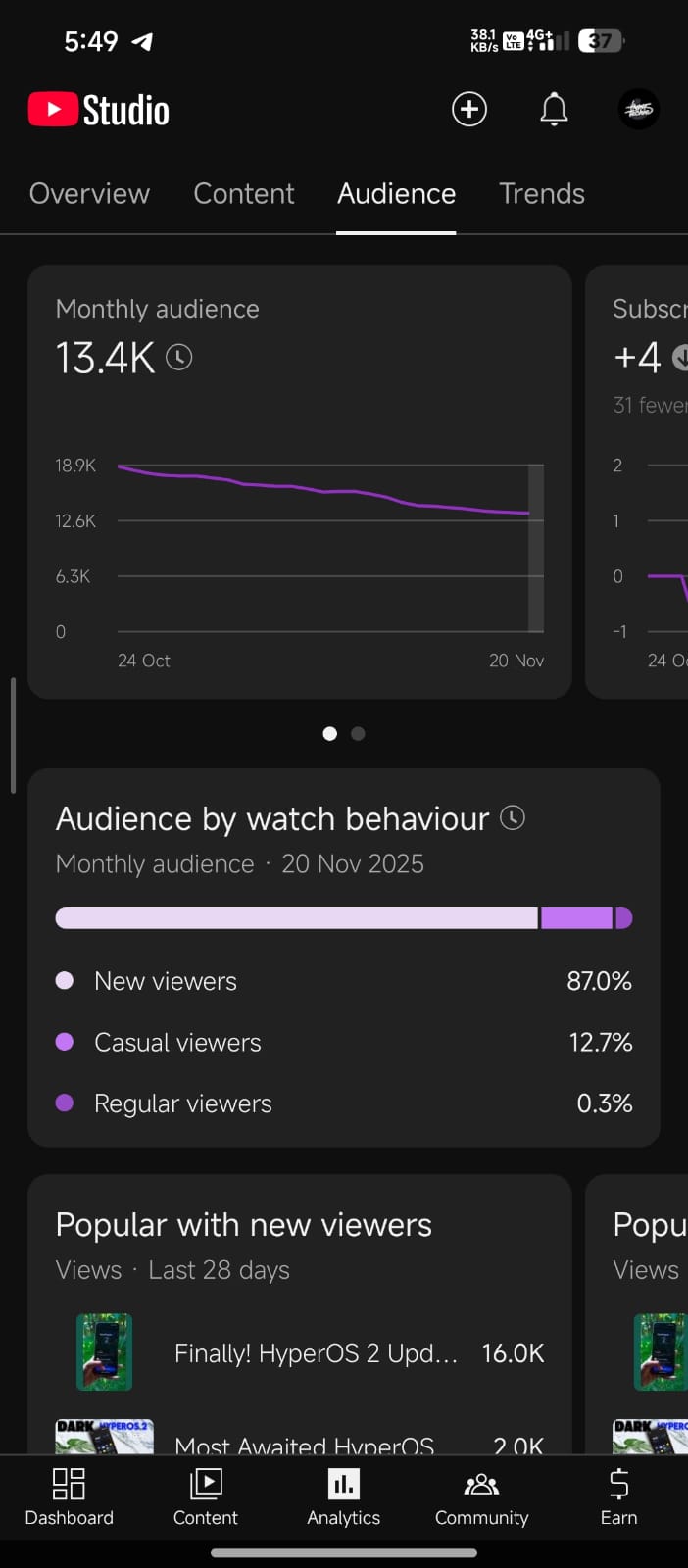 1k+ Subscriber Non-Monetised Channel | 23k+ Monthly View | No Strike