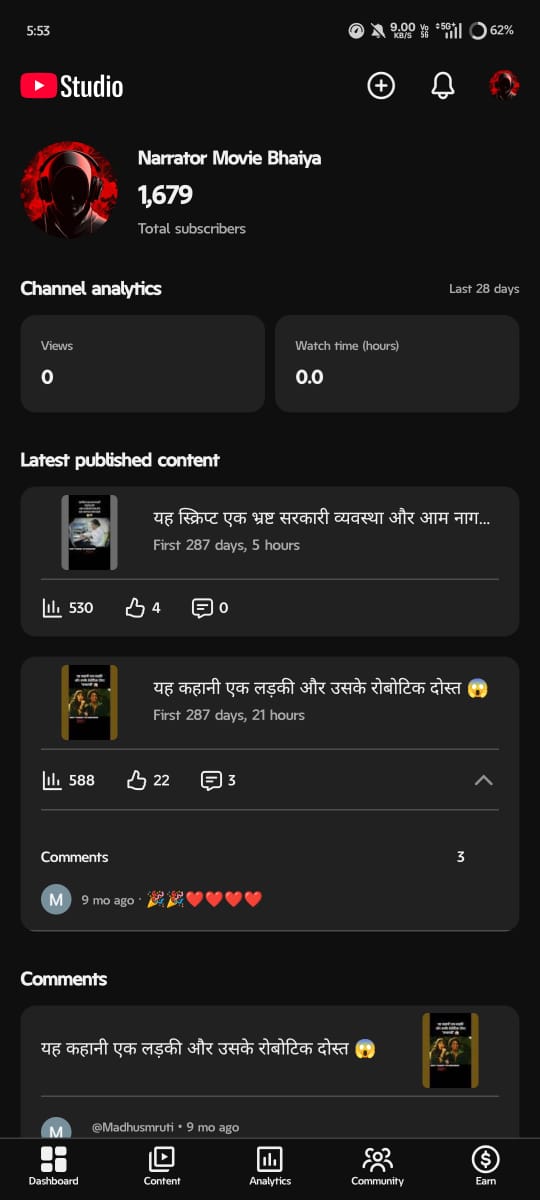 1k+ Subscriber Non-Monetised Channel | No Strike