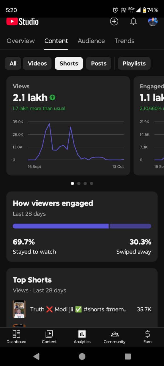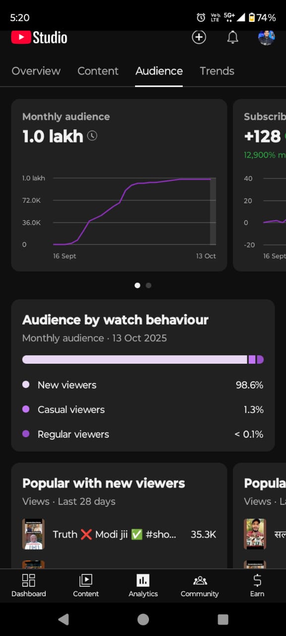 1Lakh+ Monthly Reach | Non-Monetised Channle | 5 Year Old | No Strike