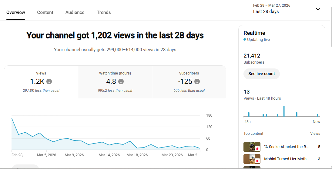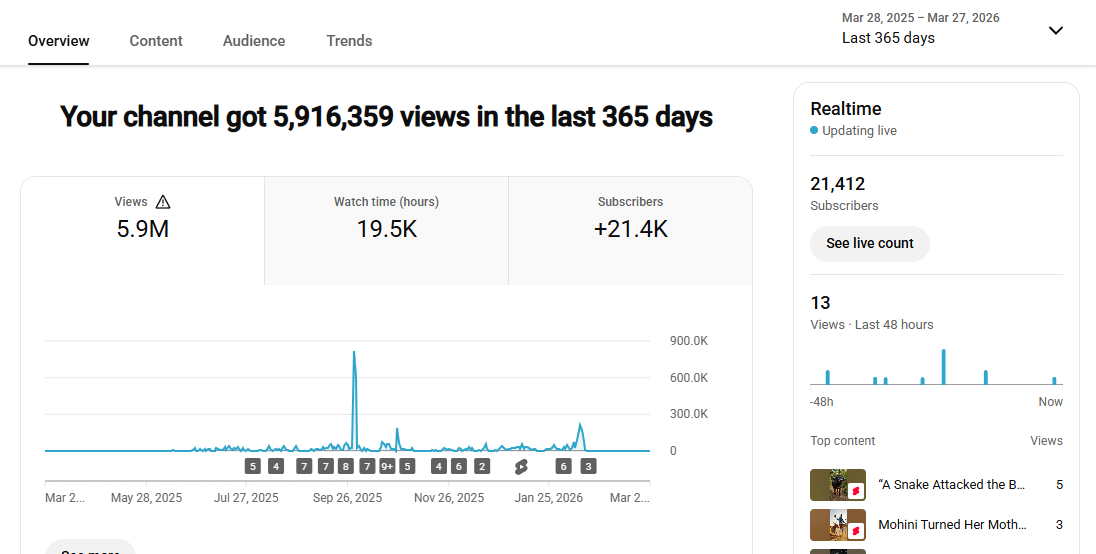 21k+ Subscriber Non-Monetised Channel | 1.4k View | No Strike