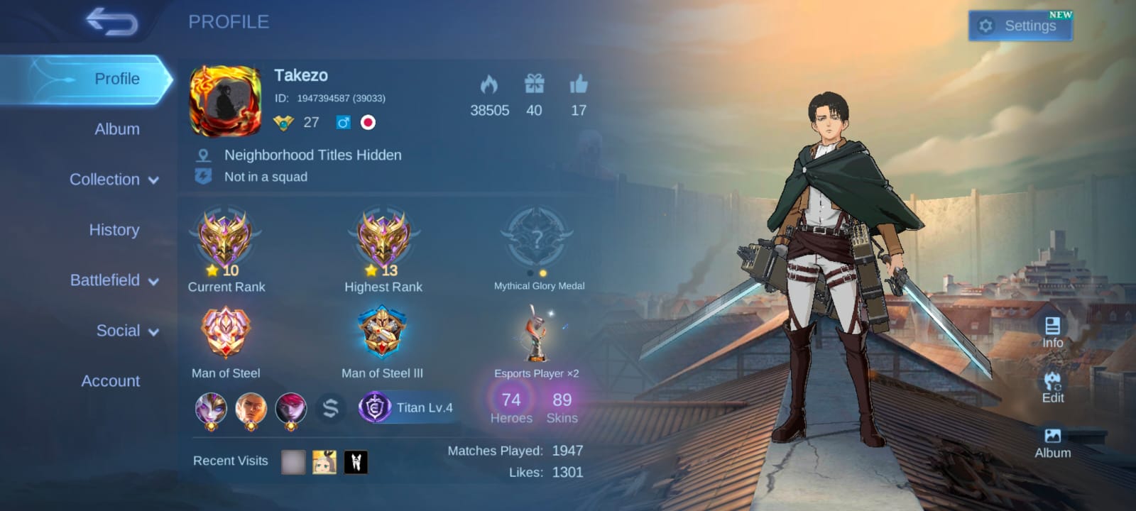 Home Moba Legend 74 Heros | 89 Skins | Region India