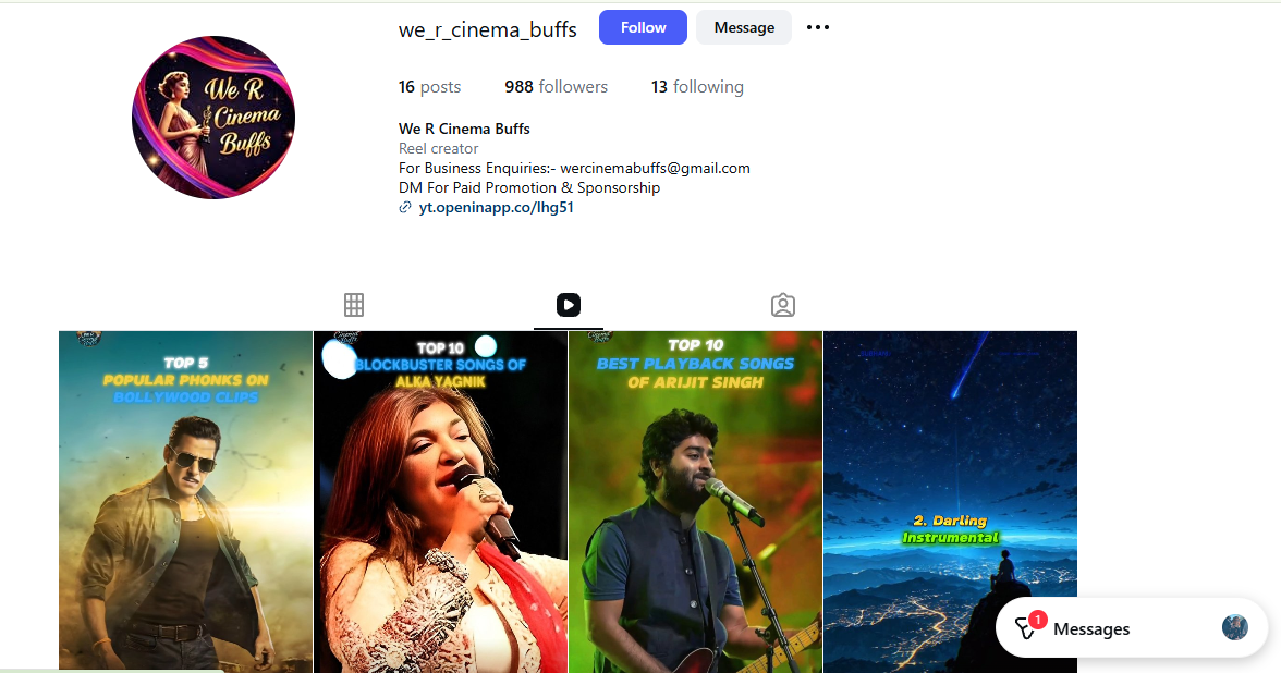 900k+ Follower Instagram Profile | 1m Monthly Reach | Indian Audience