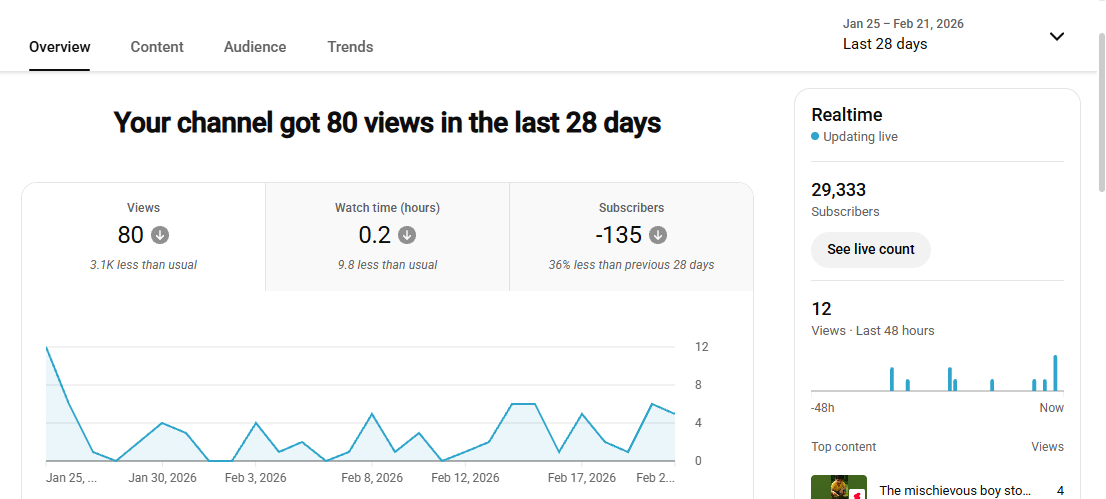29k+ Subscriber Non-Monetised Channel | Low View | No Strike