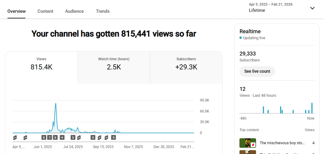 11k+ Subscriber Non-Monetised Channle | 650K+ Monthly View | 5 Month Old