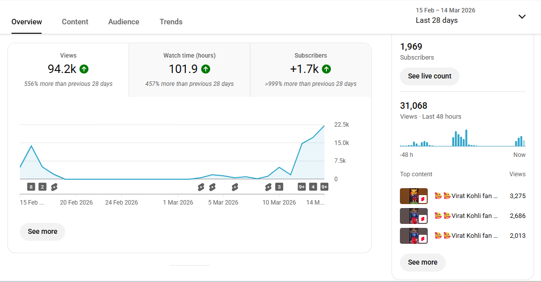 2k+ Subscriber Non-Monetised Channel | 94k+ View | No Strike