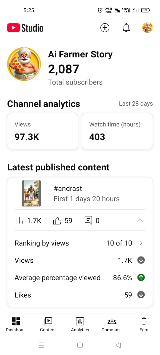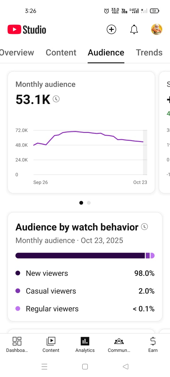 2k+ Subscriber Non-Monetised Channle | 93K+ Monthly View | Age 2 Month