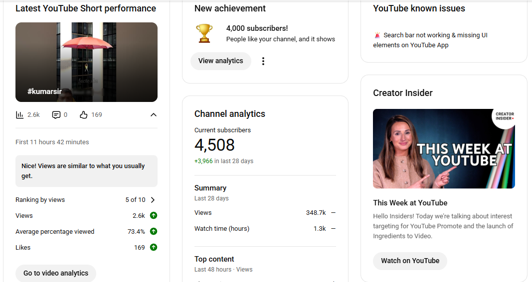 Home YouTube Channels 348k+ View Non-Monetised Channel | 4.5k+ Subscriber | No Strike