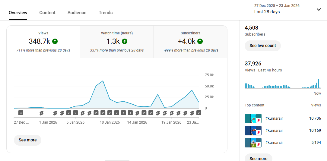 348k+ View Non-Monetised Channel | 4.5k+ Subscriber | No Strike