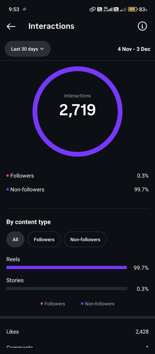 49k+ Monthly View Instagram | 400+ Follower | No Policy Issue