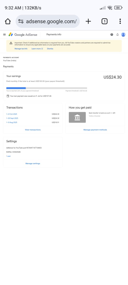 4k+ Subscriber Monetised Channle | 24$ Balance | No Strike