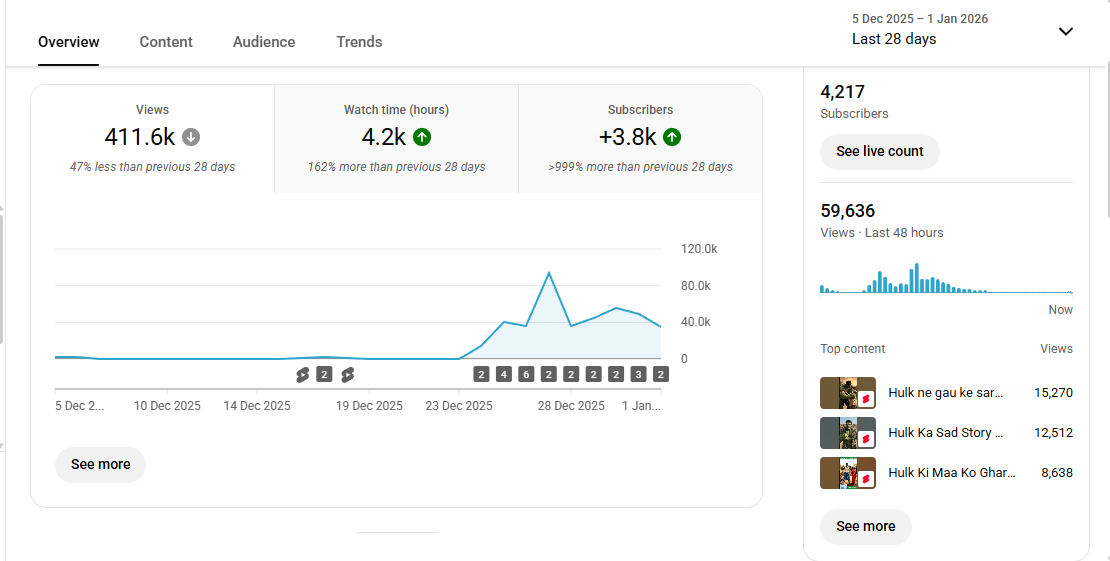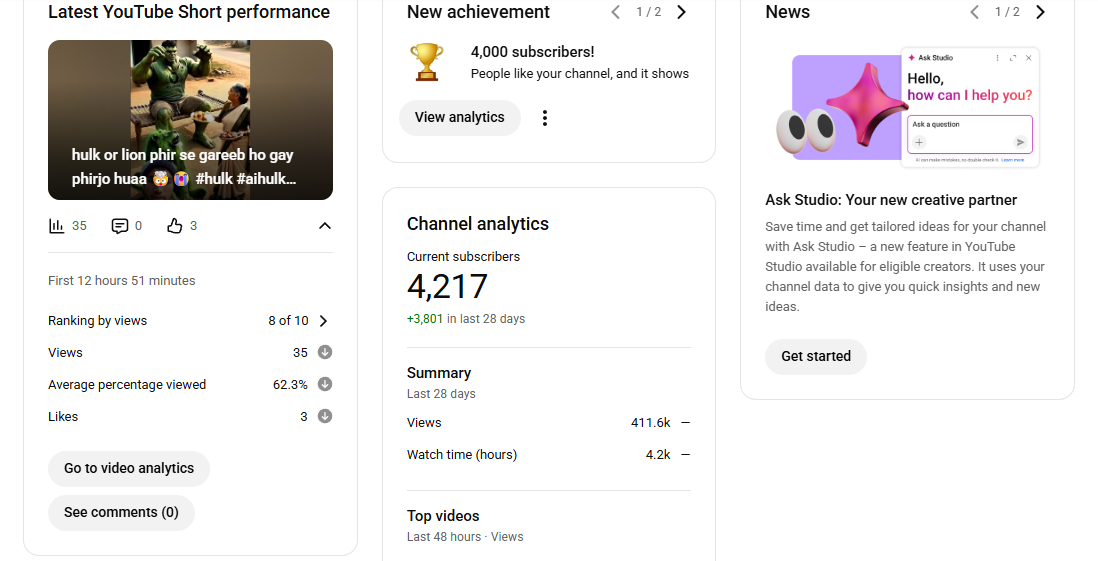 4k+ Subscriber Non-Monetised Channel | 400K+ View | No Strike