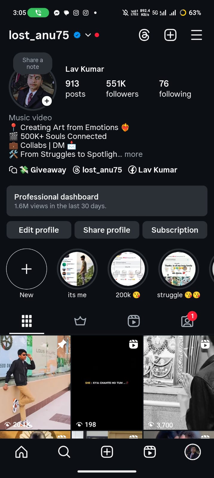 550k+ Follower Instagram Account | Personal Account | 2m+ Monthly Reach