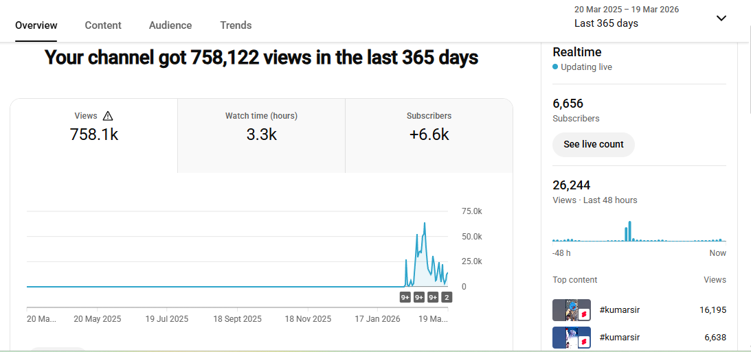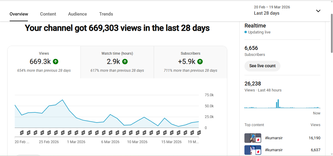 6.8k+ Subscriber Non-Monetised Channel | 680k+ View | No Strike