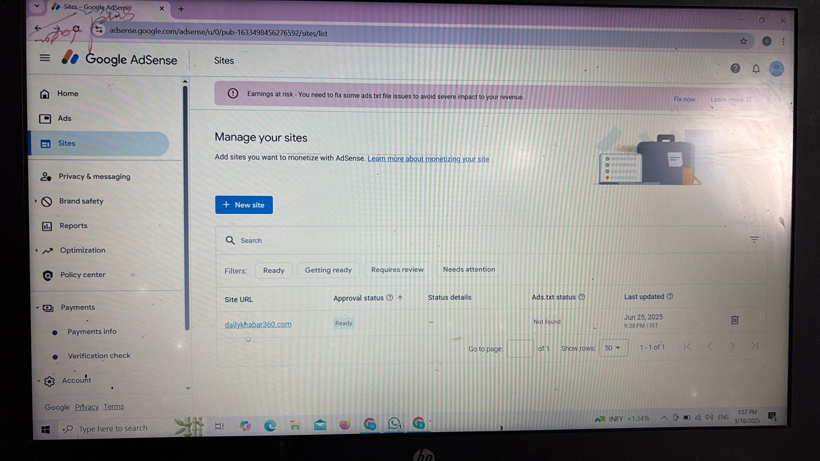 Dailykhabar360.com | Pin Verified | 19$ Balance | Ad Manager Not Use