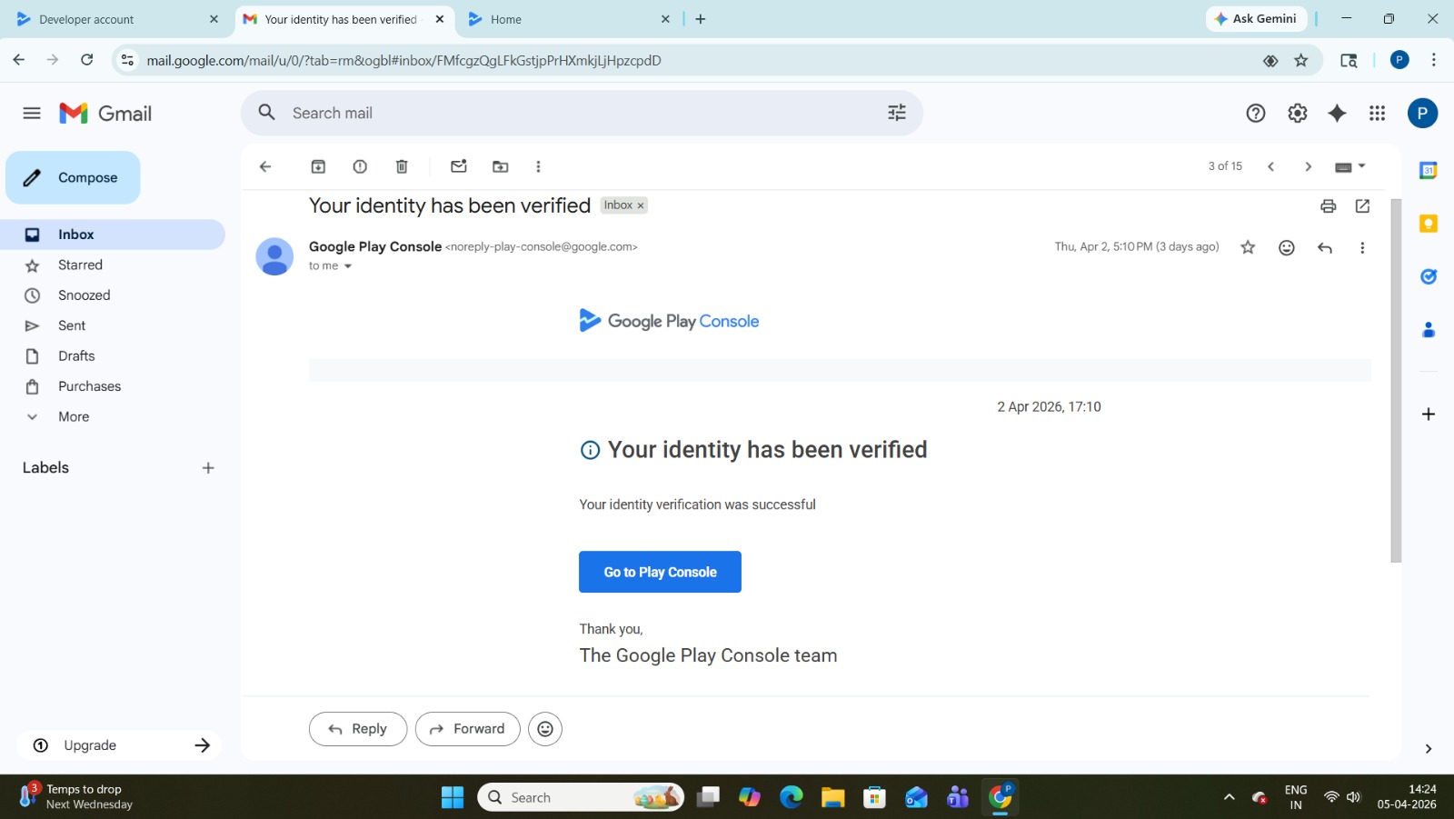 Identity Verified Google Console | 10 Day Old | No App Live