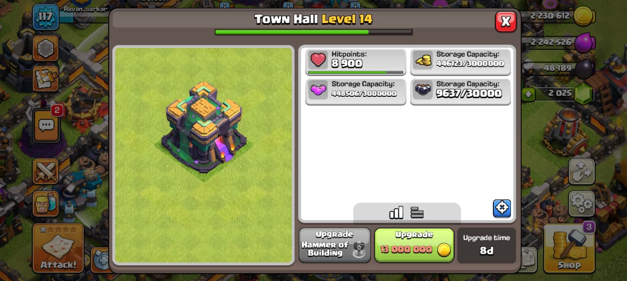 Town Hall 13 | 1400 Gems | 5 Heros
