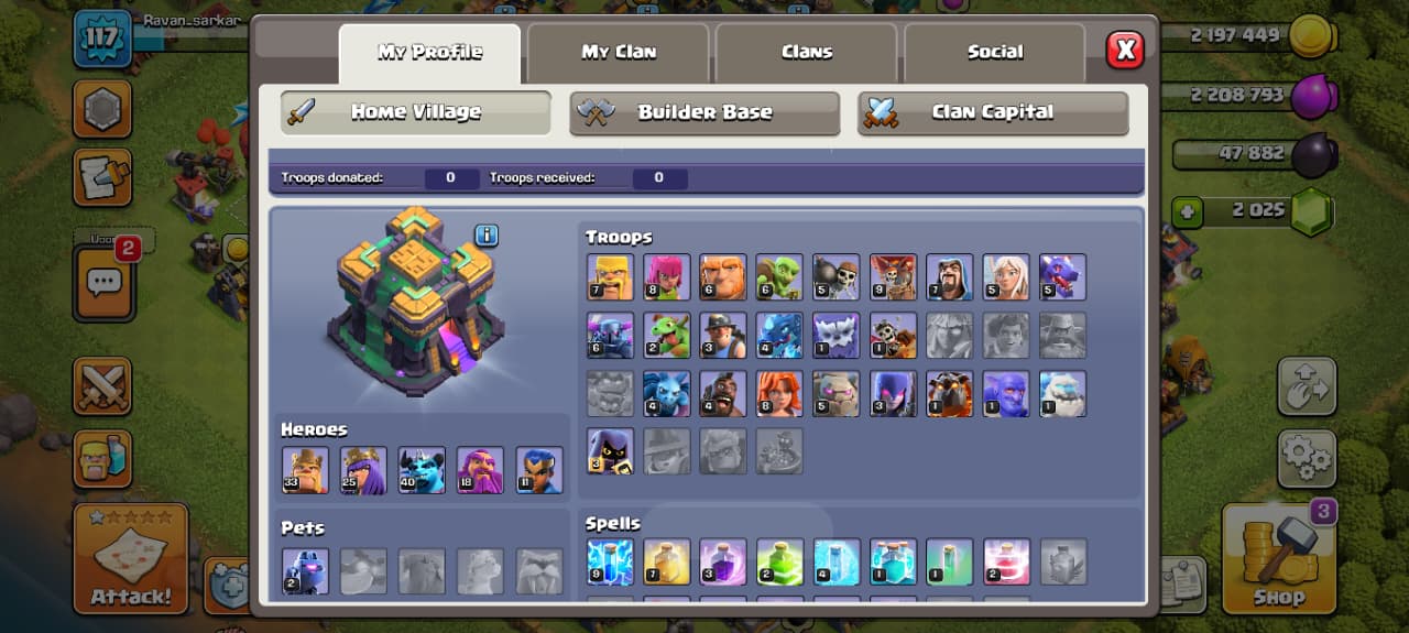 Town Hall 11 | 966 Gems | 2 Heros