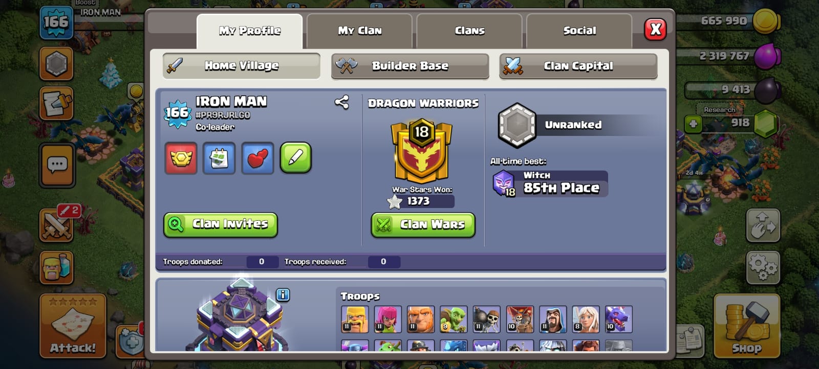 Town Hall 11 | 966 Gems | 2 Heros