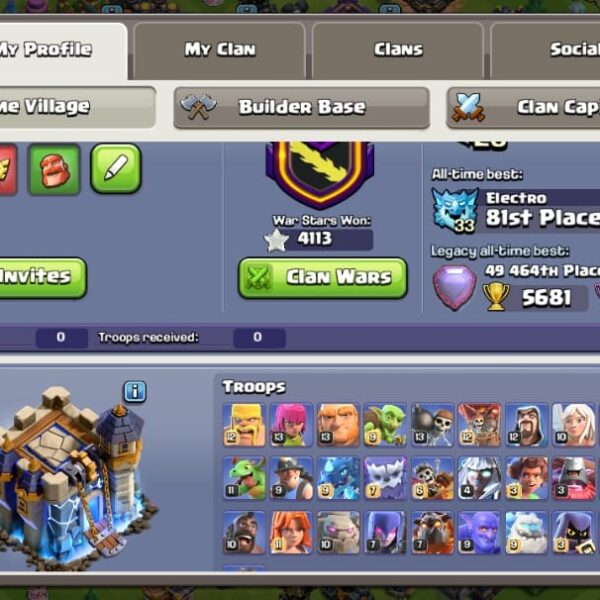 Be the first to review “Town Hall 17 | 400+ Gems | 5 Heros” Cancel reply