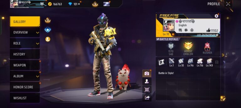 Level 72 Free Fire | 88 Bundle | 1 Evo Guns